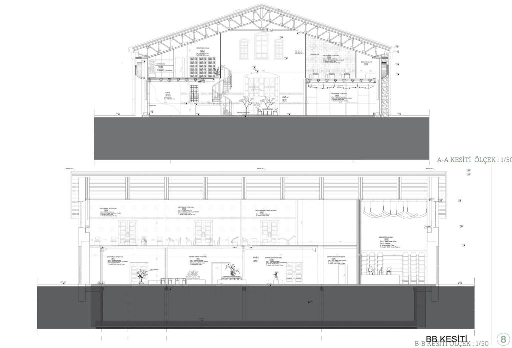 • Asma Kat bölümünün avlu ‘ ya bakan cephesine cam malzeme kullanılmıştır.