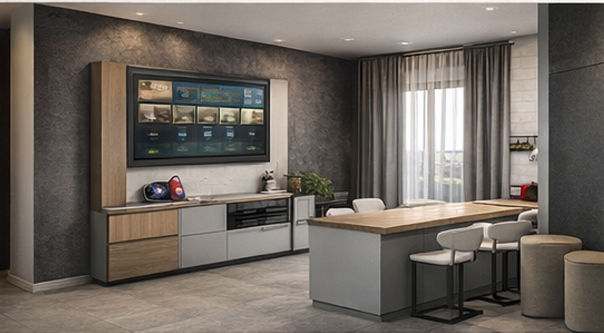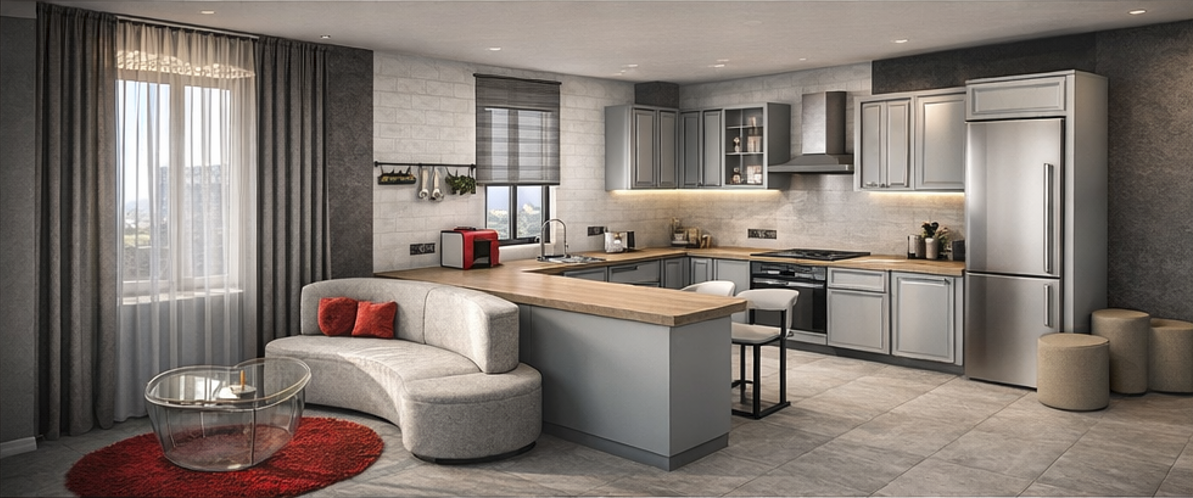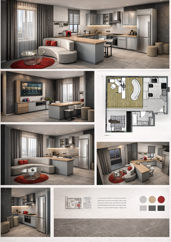 Bu stüdyo daireyi tasarlarken Cozy Pop Art konseptini sıcaklık ve enerji dengesi üzerine kuruldu . Yumuşak dokular, sıcak ahşap tonları ve davetkâr aydınlatmayı; pop art’ın cesur renkleri ve grafik detaylarıyla bir araya getirildi . Kompakt alanı ferah göstermek için açık planı korurken, ikonik sanat objeleri ve renkli vurgularla mekâna karakter katıldı.
